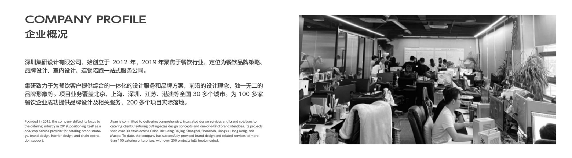 深圳集研设计有限公司是国内专注餐饮领域的全案设计机构,长期深耕餐饮品牌策划与空间设计赛道,形成以商业逻辑+落地能力+标准化复制为核心的服务体系。公司立足深圳,服务全国,为各类餐饮品牌提供从品牌定位、视觉形象到空间落地的一体化设计支持,助力品牌提升运营效率与市场竞争力。